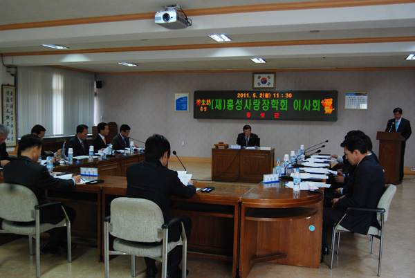 김석환 군수는 본격적인 회의에 앞서 “지난 4개월간 2억 2000여만원의 장학금 기탁이 이어지고 있다. 상공인연합회, 양돈협회, 농협홍성군지부 등에서 장학금 기탁을 해주셨고, (주)진로와는 MOU를 체결해 5000만원의 장학금을 기탁받기로 했다”며 홍성사랑장학회가 2005년도에 발족한 이래 왕성하게 활동하고 있다고 밝혔다. 아울러 김 군수는 “장학기금조성을 통해 홍성의 인재를 키워 이 지역발전을 위한 공직자를 키우는 순환구조를 만드는 것이 목표”라며, 신규이사들의 적극적인 참여를 독려했다.