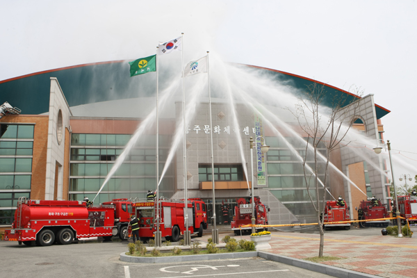 이날 훈련에는 김석환 홍성군수를 비롯한 군청 직원 외, 홍성경찰서, 홍성소방서, 한전, KT, 홍성의료원 등 12개 유관기관에서 2백여명이 참석해, 구급차, 포클레인, 소방차 등의 장비가 동원된 가운데, 지진으로 인해 건물일부가 붕괴되고 화재발생에 따른 화재진압 및 인명구조 활동을 주 내용으로 하는 실제대비 훈련이 진행됐다. 김혜동 기자