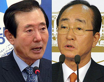 변웅전 자유선진당 대표와 심대평 국민중심연합 대표가 지난 19일 첫 공식 회동을 갖고 충청 기반 정치세력의 통합에 대해 의견을 나눴으나 오가는 대화 속에는 여전한 거리감이 느껴졌다. 변 대표는 “한 식구가 되자” “묻지도, 따지지도 말고 무조건 합치자”는 표현을 써 가며 심 대표의 복당 또는 통합을 강하게 요구했으나, 정작 심 대표는 “동참해 달라” “(길을) 같이 찾아가자”라는 말로 오히려 선을 그었다.