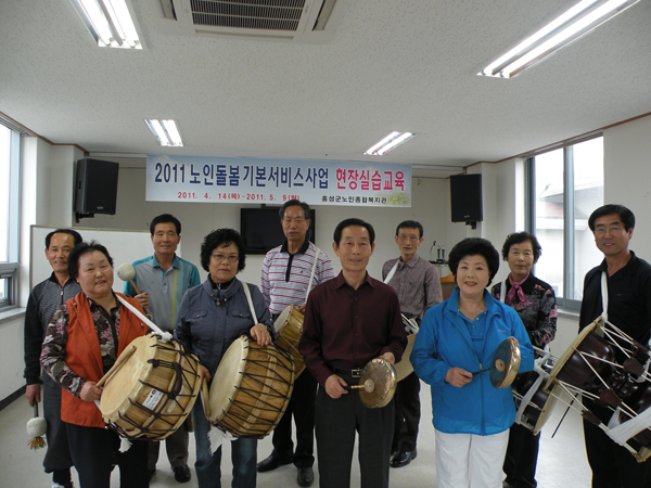 평일 오후, 홍성군노인복지관 2층 사무실에서는 풍물소리가 요란하다. 이정순 단장을 비롯한 노인 10여 명이 풍물연습에 여념이 없다.