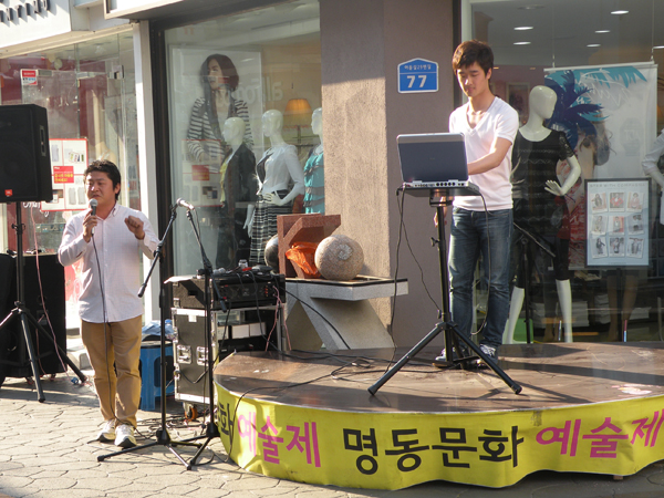 명동상가 거리예술제는 국악협회 황선경 회장이 이끄는 비나리와 가야금 병창 공연, 연예예술인협회 유준회장의 사회와 노래, 미술협회 주남수 회장의 가훈 써주기 및 초상화 그려주기, 윤종근 외 청운대 학생들의 노래 공연, 한국예총상을 수상한 최승락 씨의 통기타와 노래 공연, 가수 예림 씨의 공연 등 다채로운 공연 및 전시·체험 행사가 기획됐다.