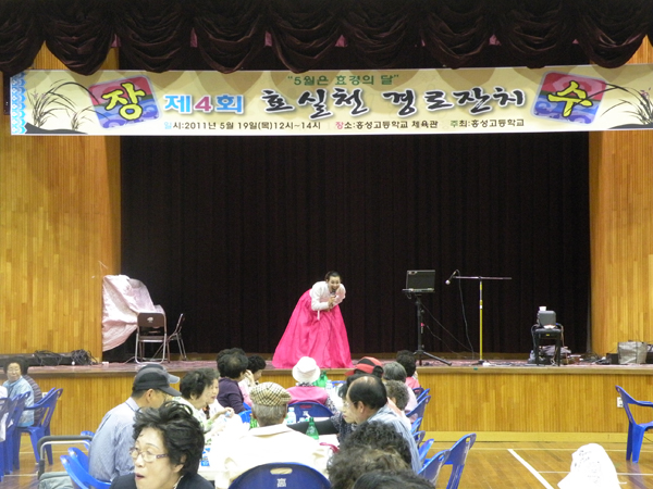 홍성고등학교(교장 서종완)는 지난 19일 오전 12시부터 학교 인근 대교리 주민 등 300여명을 초청해 제 4회 효실천 경로잔치 행사를 열었다. 이 행사는 재학생들의 ‘매봉제’라는 축제 및 체육대회 행사와 함께 진행되어 학생들과 주민이 하나 되는 화합의 마당이 됐다. 학교측에서는 어르신들에게 식사와 기념품을 제공하고 웃음치료특강, 섹소폰 연주, 국악과 민요 등 다양한 공연을 선보여 즐거운 한때를 보냈다.