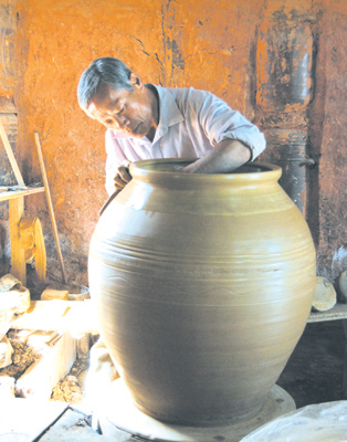 “옹기가 잘 팔리는 것도 아니었지만, 작업환경도 지금처럼 좋은 것도 아니었지요. 지금처럼 좋은 잿물을 구할 수가 있나... 나무가 흔했나... 어렵게 만들면 플라스틱이나 광명단을 바른 값싼 공장제 옹기 때문에 팔기도 쉽지 않았지”