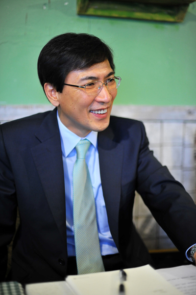 사회 공동의 가치보다는 이해단체의 이익이 충돌하는 사회에서 그것을 통합해야 하는 리더십 발휘가 도지사의 경우 매우 중요한 일이고 그 과정에서 섬처럼 고립되는 일이 종종 있는데 그런 경우에 어려움을 많이 느낍니다. 근래 세 가지 방향에서 추진하는 행정혁신에 가장 큰 주안점을 두고 있는데 첫째는 도로 뚫고 다리 놓고 전기 넣는 방식의 사회간접자본 중심의 개발연대식 행정 역할에서 벗어나는 것, 두 번째는 ‘끝까지 행정’이라 표현하고 싶은데 담당자가 바뀌어도 업무가 단절되지 않도록 하는 것, 세 번째는 융·복합 행정 내지 협치 행정을 실현해 나가는 일 등에 관심을 두고 추진하고 있습니다.