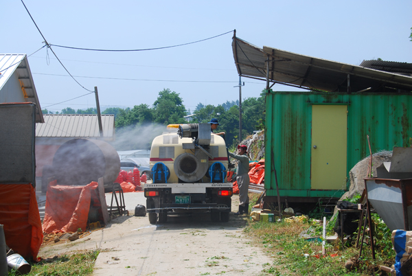 지난 21일 가축위생연구소 직원 30여명은 AI발생으로 폭락한 닭 값 때문에 비워둔 농가를 방문해 무성하게 자란 잡초를 제거, 축사 집기를 정리, 소독차량을 이용하여 축사 내·외부를 소독하는 등 더위도 잊고 농촌일손돕기에 만전을 기했다.