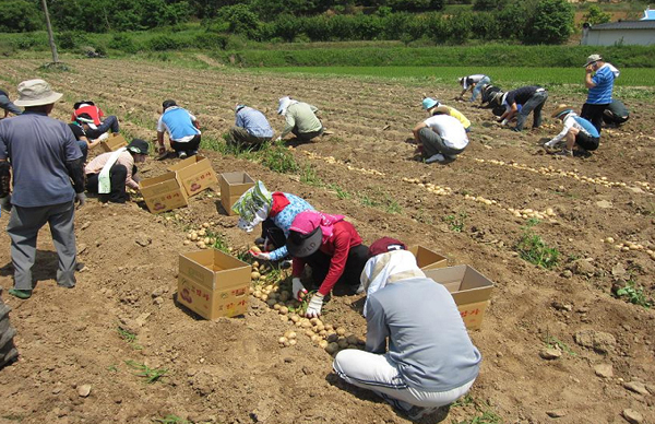 갈산면(면장 김관태) 직원들과 군청 경제과 · 보건소 직원 30명은 지난 16일 갈산면 동성리 동곡마을 김기택 씨 댁을 방문하여 감자 캐기 작업을 실시했다. 김기택 씨는 “요즘처럼 농촌에서 일손구하기 어려운 실정에서, 직원들이 적극 나서서 감자 캐기 작업을 도와줘서 한시름 걱정을 놓게 됐다”며 고마운 마음을 전했다. 이날 일손 돕기에 참여한 한 공무원은 “서툰 솜씨였지만 여럿이 모여 농가에 작은 도움을 드릴 수 있어 보람을 느꼈다”고 말했다.