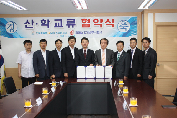 한국폴리텍IV대학 홍성캠퍼스(학장 허광)와 한전산업개발(주)(대표 김영한)는 지난 24일 대학 회의실에서 지역인재 육성에 바탕을 둔 산학교류 협력을 위한 협약(MOU)을 체결했다. 이번 협약으로 대학은 재직자 직무능력향상훈련과 기업에 맞는 지역인재 양성 공급을, 한전산업개발은 현장기술전수와 재학생 현장실습 및 인력채용을 중심으로 하는 실질적 협력관계를 구축하여 상호 Win-Win하는 계기를 마련하게 됐다.