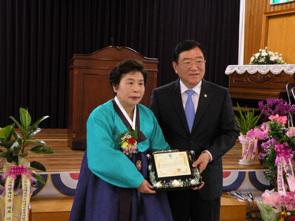 이날 강영희 소장은 40년 동안 남다른 열정과 탁월한 리더십으로 농업기술센터를 이끌고 홍성군생활개선회를 전국 최고의 수준으로 올려놓는 등 홍성의 농업 위상을 드높인 공이 인정되어 홍성군수와 각 단체로부터 공로패와 감사패를 받았다.
