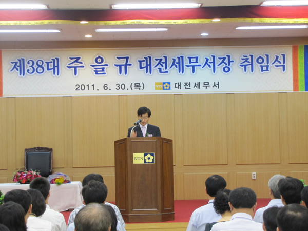 신임 주을규 서장은 취임사에서 “국민이 신뢰하는 국세청을 만들어 나가기 위해 ‘고객 섬김의 문화’를 정착시켜야 하며, 과세 품질향상을 위한 지속적인 노력으로 국가재정 수요를 원활히 뒷받침하여야 되고 모든 일에 긍정적인 사고를 가지고 항상 노력하고 최선을 다하는 대전세무서인이 되자”며 “미래에 대한 꿈을 가지고 자기계발을 위해 끊임없는 노력해 줄 것”을 당부했다.