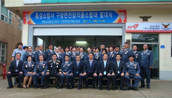 홍성소방서(서장 최경식)는 지난 7일 오전 11시 초기 재난현장 대응능력을 강화하고 민간중심의 자율적인 방재체제를 구축하고자 구항면 전담의용소방대 발대식을 가졌다.