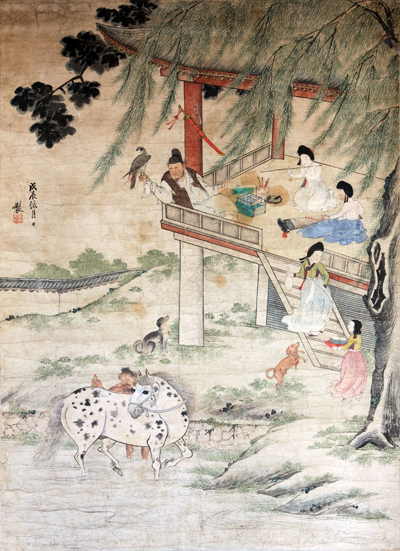 참고로 이 그림에는 호남사호 또는 무반사호라 불리는 무관들이 좋아하는 네 가지가 나와 있는데 그것은 첫째 매(鷹), 둘째 말(馬), 셋째 검(劍), 넷째 여자(色)이다.