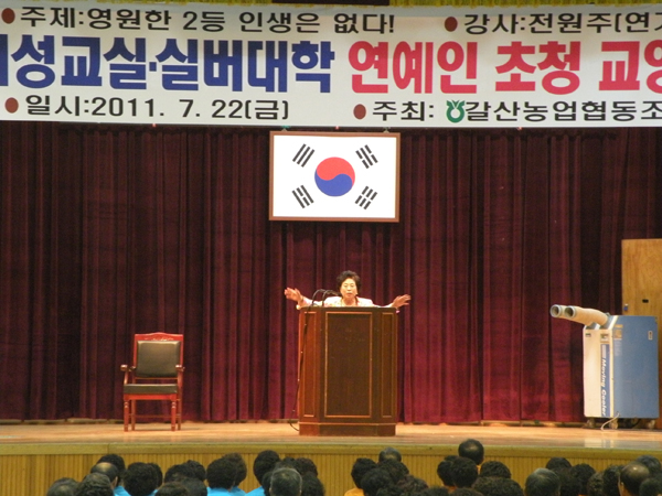 갈산농업협동조합 주최로 여성교실·실버대학 연예인 초청 강연이 지난 22일 오후 2시 갈산중·고 강당에서 열렸다. 이번에 초청된 강사는 연기자 전원주 씨로 ‘영원한 2등 인생은 없다’라는 주제로 참석한 300여 회원들의 뜨거운 호응 속에 진행됐다. 갈산농협의 실버대학은 현재 4기이며 지난 5일 개강하여 다음달 19일에 종강하며 다채로운 프로그램으로 지역민들의 사랑을 받고 있다. 저작권자 © 홍주일보 무단전재 및 재배포 금지 최선경 편집국장 다른기사 보기 페이스북 카카오톡 URL복사 기사공유하기
