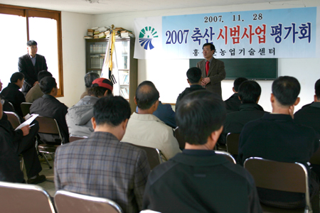 홍성군은 지난 28일 결성면 금곡리 최금식(71세)씨 축산농가에서 기관단체장 및 축산농가 150여명이 참석한 가운데 축산농가의 소득증대와 축산발전을 위한 축산시범사업 종합평가회를 개최했다.
