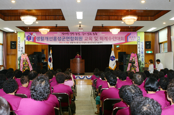 생활개선홍성군연합회(회장 윤종순)는 지역사회 발전의 주체자로서 농촌여성의 리더십을 함양하고자 지난 8일 홍성군농업기술센터 생활과학관에서 생활개선회원 700여명이 어우러진 2011년 생활개선홍성군연합회원 교육 및 하계수련대회를 개최했다.