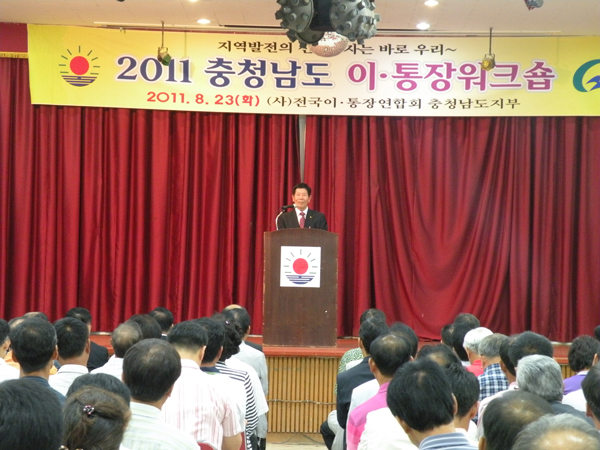 충청남도 이통장연합회(지부장 송순동)는 지난 23일 용봉산 청소년수련원에서 ‘2011 충청남도 이·통장 워크숍’을 개최했다. 이날 행사는 700여명의 이·통장들과 구본충 충청남도 행정부지사 등 기관장들이 참여한 가운데 개회식을 시작으로 김병조 교수를 초빙 ‘명심보감에서 배우는 행복한 삶’ 소양교육을 실시하고 오후엔 충남도청 신축현장 답사, 홍주성 역사관 관람, 김좌진장군, 한용운생가를 견학했다. 저작권자 © 홍주일보 무단전재 및 재배포 금지 이선화 기자 다른기사 보기 페이스북 카카오톡 URL복사 기사공유하기