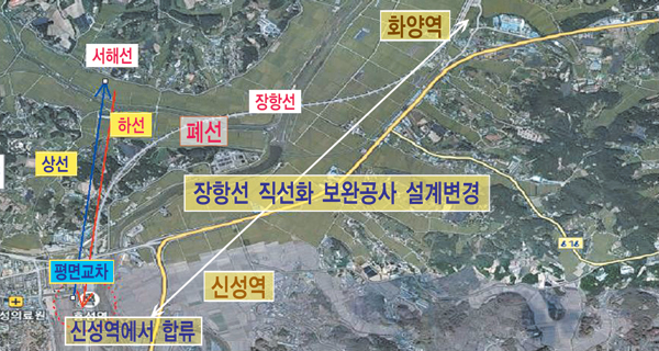 그리고 기존 장항선과 서해선 상·하행선이 내기마을을 3등분한 채 관통해 마을을 완전히 파괴할 수 있다고 밝히며, 장항선 복선과 서해선 복선도 홍성역부터 복선 합류할 경우 병목현상이 일어나 열차 운행에도 효율성이 떨어진다며 강하게 노선변경을 요구했다.