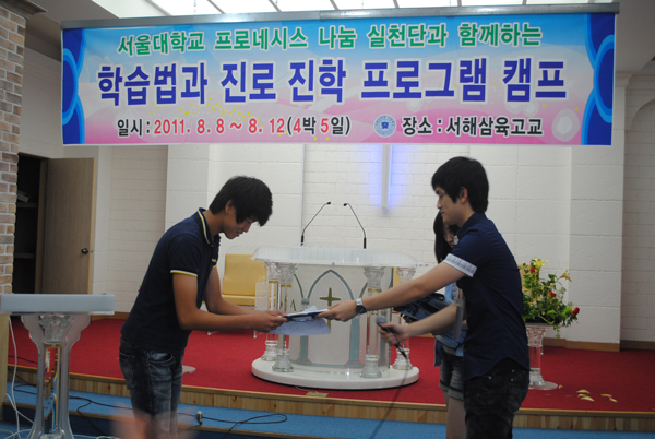 삼육고(교장 이봉길)는 지난 8일부터 12일까지 4박 5일간 서울대 프로네시스 나눔실천단을 초청해 여름 나눔교실을 운영했다.