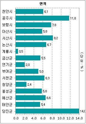 올해 1월부터 10월까지 충남평균거래 면적은 149,817㎡로 천안(19,733㎡)이 가장 많은 거래량을 보이고 있고 공주(15,058㎡), 보령(14,576㎡), 당진(12,764㎡)에 이어 홍성은 7,429㎡로 9위를 기록하고 있다.