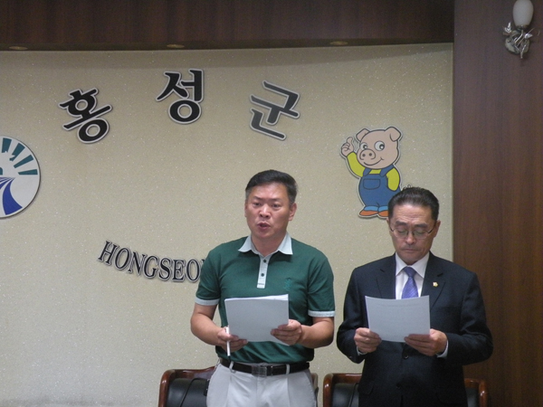 오석범, 이두원 의원은 지난 7일 오전 11시 군청홍보실에서 의원간담회를 비공개하겠다는 홍성군의회 방침에 전면 반대한다는 내용의 기자회견을 열었다.