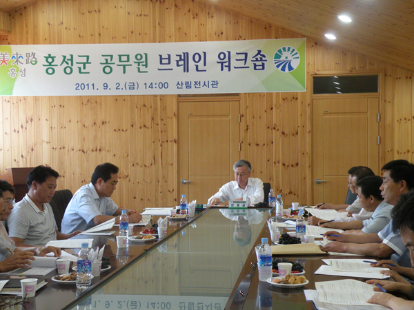 홍성군은 지난 2일 용봉산 산림전시관에서 각 부서별 담당 1명씩 20여명이 참여한 가운데, “내가 군수라면?”이라는 주제로 새롭게 하고 싶은 일’이나 ‘개선·보완하고 싶은 일’에 대해서 홍성군공무원 브레인워크숍을 개최했다. 저작권자 © 홍주일보 무단전재 및 재배포 금지 최선경 편집국장 다른기사 보기 페이스북 카카오톡 URL복사 기사공유하기