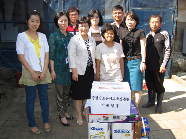 충남유아교육진흥원(원장 임호빈)은 지난 5일 우리 민족의 고유명절인 추석을 앞두고 금마면 덕정리 정신지체 장애인 모자가정을 방문하여 봉사활동을 실시했다.