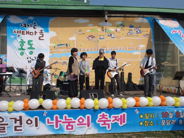 아울러 홍동중학교 학생들로 구성된 흥겨운 풍물 한마당과 교내밴드 ‘보이스피싱’의 공연도 신명나게 펼쳐져 관광객들로부터 많은 박수갈채를 받았으며, 행사장 주변에는 유기농 쌀막걸리와 쌀빵 뻥튀기 및 인절미 등의 유기농 식품도 맛볼 수 있는 음식코너도 다양하게 마련되어 체험객들의 줄이 끊이지 않았다.