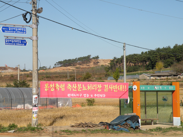 그러던 중 축협은 갈산면 일대에 새로운 사업대상지를 정하자 이번에는 갈산면 취생리·부기리·동성리·기산리 일부 주민들이 마을 곳곳에 가축분뇨 공동화사업시설 설치 반대 현수막을 내걸고 지난 24일 축협과 군청을 항의 방문해 군수와의 면담을 요구했다.