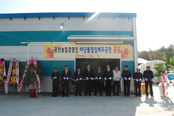 본격적인 김장철을 앞두고 광천읍 월림리에 군내 최대규모의 절임배추 공장이 들어섰다. 광천농업경영인영농조합법인(대표이사 박창덕)은 지난 1일 오전 장광수 광천읍장을 비롯한 관계자, 조합원 등이 참석한 가운데 광천읍 월림리에서 절임배추 가공공장 준공식을 가졌다.