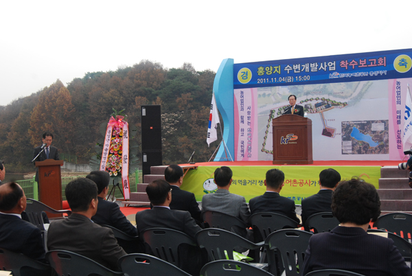 김석환 군수는 축사를 통해 “홍성군에서도 테마공원조성사업에 70억원을 투자하는 만큼 농어촌공사와 홍성군이 협력해 2015년 완공을 목표로 차질없이 시공될 수 있도록 최선을 다 하겠다”며, “사업이 완료되면 홍양저수지는 누구나 즐길 수 있는 자연친화적 휴식·레저·체험공간으로 재탄생하게 될 것이고, 홍양지 일원이 친환경적 관광명소로 변모되면, 농어촌지역의 경제활성화에 크게 기여하게 될 것”이라고 기대감을 표했다.