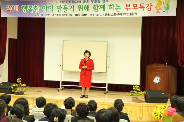 충청남도유아교육진흥원(원장 임호빈)은 지난 7일 충청남도내의 국·공·사립유치원 학부모 234명을 대상으로 ‘2011행복한 아이 만들기 위해 함께 하는 부모 특강’을 실시했다.