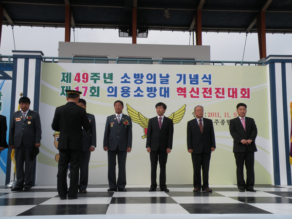 홍성군의용소방대연합회(회장 유종섭) 주최, 홍성소방서(서장 이동우) 후원으로 ‘제49주년 소방의 날 및 제17회 의용소방대 혁신전진대회’를 지난 9일 오전 10시 홍주종합경기장에서 개최했다. 이번 행사는 그동안 재난 예방 및 대응활동에 전념해온 소방가족 및 기타 관계자의 사기 진작과 화합을 도모하기 위해 기념식 이후 혁신전진대회로 진행됐다.
