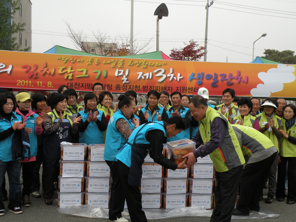 또한 김장담그기 행사 후에 10월과 11월에 생일을 맞은 자조모임 회원 11명에 대한 생일잔치를 마련하고 돼지고기와 떡을 마련한 따뜻한 오찬을 나누며 훈훈한 정을 주고받았다.