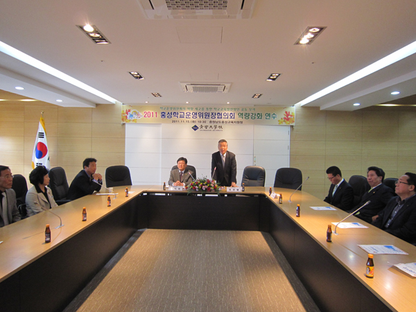 충청남도홍성교육지원청(교육장 박익현)은 지난 15일 청운대학교 본관 청운홀에서 각급 학교 운영위원회 위원장 42명을 대상으로 ‘2011학교운영위원장 협의회’를 실시했다.