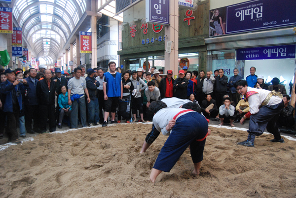 국민생활체육전국씨름연합회가 주관한 이번 행사는 오후 2시부터 우리 민족 고유의 전통종목인 씨름을 전통시장에서 고객과 함께 체험함으로써 전통시장을 찾는 고객들에게 볼거리와 체험거리를 제공하고, 시장 내 상인들의 단합을 목적으로 열렸다.