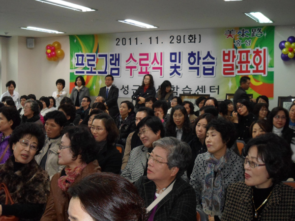 홍성군은 지난달 29일 오전 11시 폴리텍대학 내 홍성군평생학습센터에서 2011 하반기 평생학습센터 프로그램 수료식 및 학습발표회를 개최하고 올 한 해 동안의 평생학습프로그램을 마무리했다.