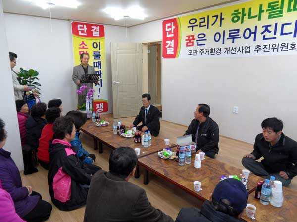 한편 추진위는 지난 15일 추진위를 비롯한 주민들이 엽연초 회관에 모여 기약 없이 연기된 오관지구주거환경개선사업의 조속한 추진을 위한 군청과 군의회의 특단을 촉구하며, 겨울철 대비 소방, 난방 대책수립을 호소하는 ‘월동 대책을 위한 주민설명회’를 개최한 바 있다.
