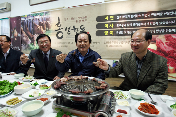 자리를 옮겨 오찬에는 홍성축협장, 지역 축산인, 충남 방역관계자 등과 간담회를 가지면서 충남한우를 대표하는 ‘토바우’의 소비홍보를 위한 시식회도 가졌다.
