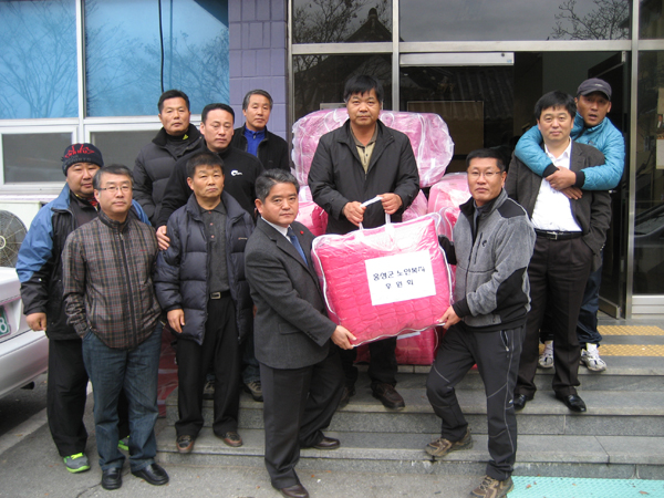 홍성군 노인복지후원회(회장 김동배)가 동절기 소외된 이웃을 위해 이불 50채(싯가 400만원 상당)를 기탁해 사랑의 온도를 높였다. 노인복지후원회는 지난 2001년 결성된 이래, 관내 노인복지 증진을 위하여 활발히 활동 중에 있으며, 올해도 무의탁 독거노인 장례지원, 독거노인 경복궁 관람 등을 지원하는 등 주로 독거노인들에 대한 후원과 정서적 지원활동을 펼치고 있다. 군은 이번에 기탁 받은 이불을 각 읍·면의 독거노인들에게 전달할 예정이다.
