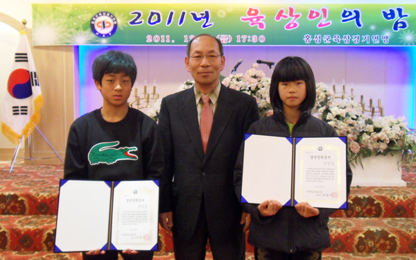그 첫 사업의 일환으로 홍주일보·홍주신문(대표 한관우)은 홍성군육상경기연맹에서 추천한 김수현(광천제일고등학교 1학년), 이부영(홍남초등학교 6학년) 학생과 첫 ‘1대1결연’을 맺고 ‘2012년 육상꿈나무 결연장학사업’의 첫 포문을 열었다.