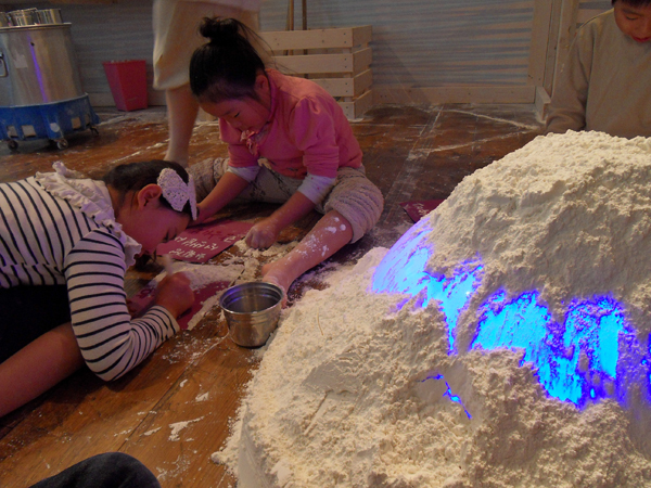 ‘가루야 가루야’는 난타 공연 제작자로 유명한 송승환 씨와 물체극이라는 장르를 개척한 이영란 작가가 함께 지난 2005년부터 선보인 체험놀이 형식의 공연으로, 밀가루를 이용해 오감을 자극하는 체험을 통해 감성지수를 높일 수 있어 큰 인기를 끌고 있는 작품이다.