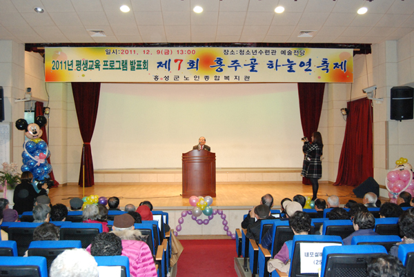 지난 1년간 땀과 열정으로 배우고 익혀 온 기량을 선보이는 지역 내 어르신들의 발표의 장인 제7회 홍주골하늘연 축제가 지난 9일 홍성군청소년수련관 예술전당에서 펼쳐졌다.