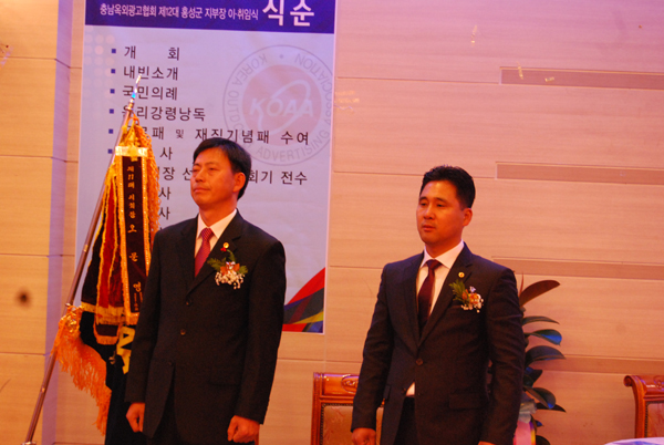 충남옥외광고협회 제12대 홍성군 지부장 이·취임식이 지난 15일 오후 6시 아름다운웨딩홀에서 내외귀빈과 회원 100여명이 참석한 가운데 열렸다.