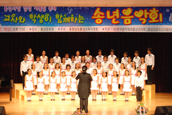 홍성군음악교과협의회가 주관한 이번 송년음악회에서는 홍성군청소년수련관 소년소녀합창단의 합창, 바이올린 독주, 판소리, 소프라노 독창, 피아노 듀엣, 홍성군 교직원합창단의 공연이 이어져 한 해를 마무리하는 자리에서 교사와 학생, 학부모들이 함께 마음을 나누며 음악을 통해 가는 해와 오는 해의 의미를 되새기는 귀중한 시간이 됐다.