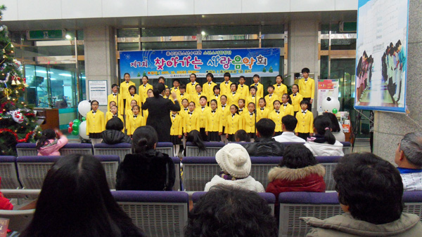 이지은 씨의 지휘로 진행된 45명의 소년소녀합창단은 화이트크리스마스, 크리스마스 메들리 등의 합창곡을 합창하여 환자와 환자 보호자들에게 사랑과 희망, 용기를 전해주는 메신저로서 큰 박수를 받았다.