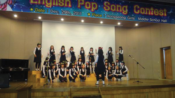 홍성여자중학교(교장 심숙희)는 방학 전날인 지난달 29일에 특별한 학교행사로 팝송부르기 대회를 열었다.
