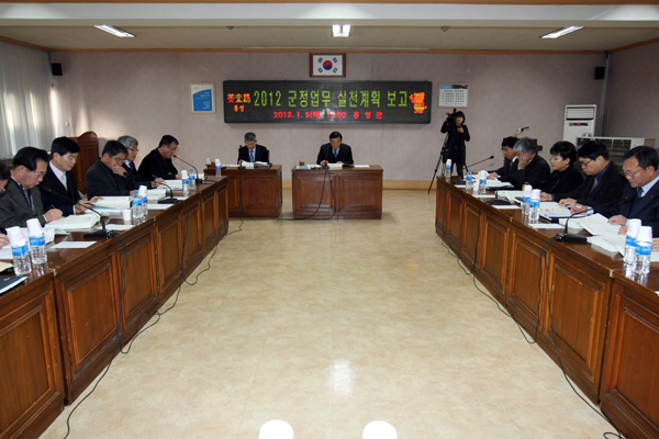 임진년 새해를 맞아 지난 5일 오전 10시부터 군청회의실에서 김석한 군수와 염창선 부군수를 비롯한 각 실·과장, 직속기관·사업소장 등 26명이 참석한 가운데, 2012년 한 해 동안 추진할 군정업무 실천계획에 대한 보고회를 개최했다.