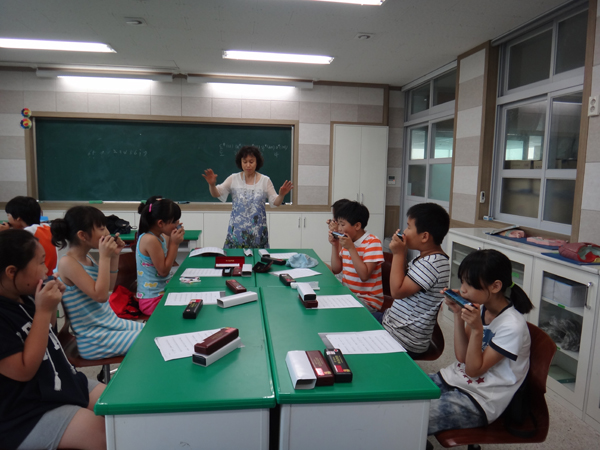 특히 하모니카는 다른 악기에 비해 휴대가 간편하고 누구나 쉽게 배워 가볍게 즐길 수 있다는 장점이 있어 학교에서 하모니카 70여개를 구입, 전교생과 교직원들에게 나눠주고 배울 수 있도록 해 홍북초에는 아름다운 하모니카 선율이 가득하다.