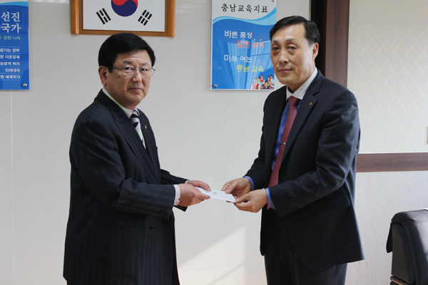 홍성군수영연합회(회장 박문수)가 지난 10일 홍성군 수영꿈나무들의 훈련비에 사용해달라며 100만원의 장학금을 홍성교육지원청(교육장 박익현)에 기탁했다.