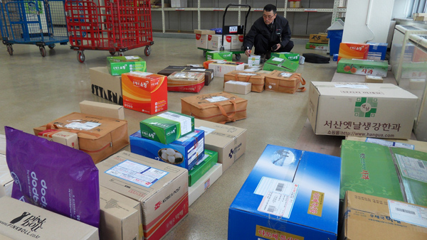 명절 앞둔 우체국 택배 집하장, “전쟁이 따로 없네”