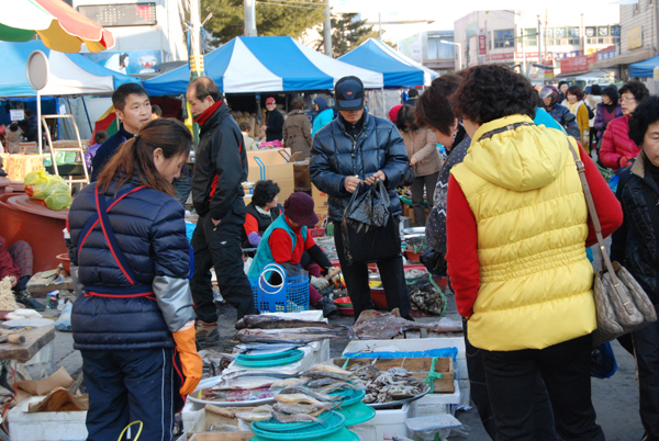 대목장날었던 지난 16일, 홍성5일장은 흥정에 여념이 없는 상인과 손님들이 어우러져 여느때보다 큰 활기를 띄었다. 대목장의 명성대로 명절선물, 제수용품 등을 구매하려는 손님들로 북새통을 이루었다.